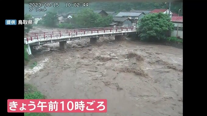 台風7号の影響で15日朝から雨が降り続いた鳥取県。大雨特別警報が発表されました。