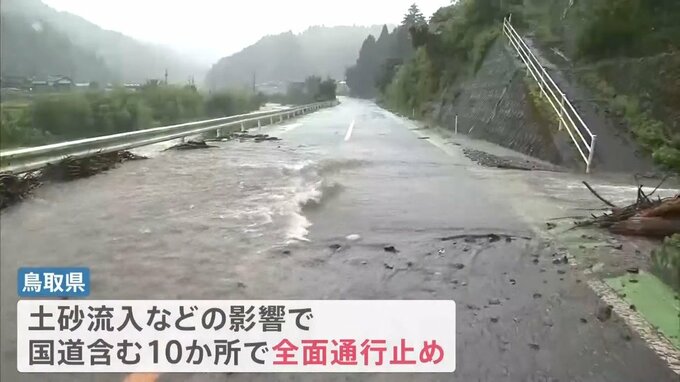 鳥取県内では土砂の流入などの影響で、国道を含む10か所が全面通行止めに。