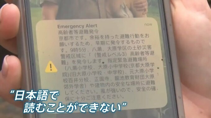 携帯には警戒情報が届いていたものの、日本語で読むことができないと言います。