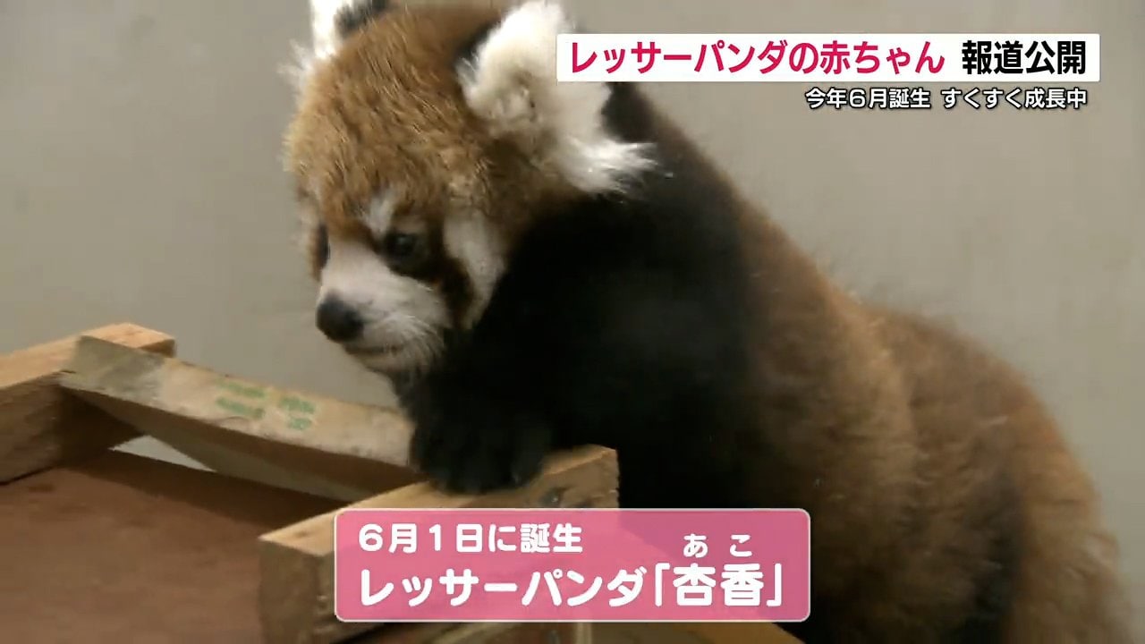 後生川凜アナウンサー「こちらが、2か月前に生まれたメスのレッサーパンダ