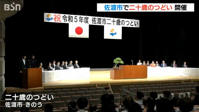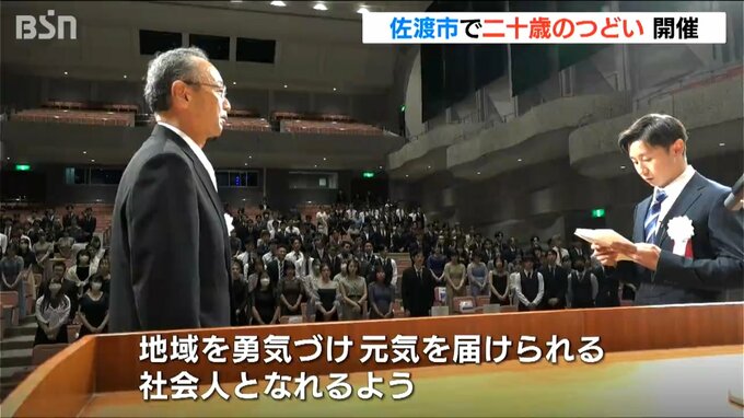 佐渡市で開かれた「二十歳(はたち)のつどい」。