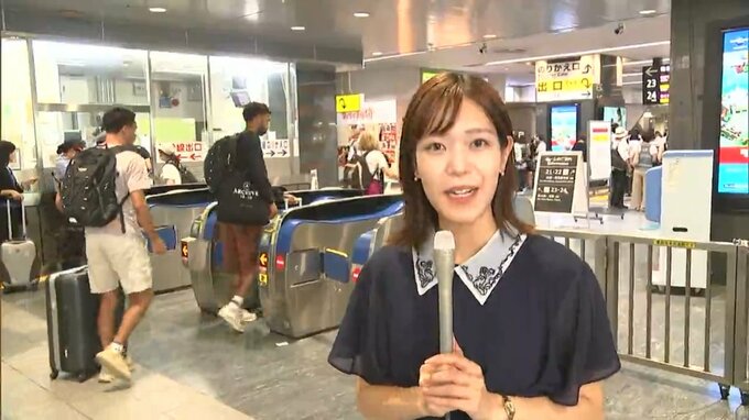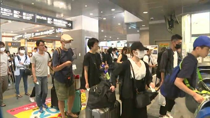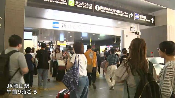 台風7号から一夜明け、JR岡山駅は、一日遅れのUターン客などで混雑しています。