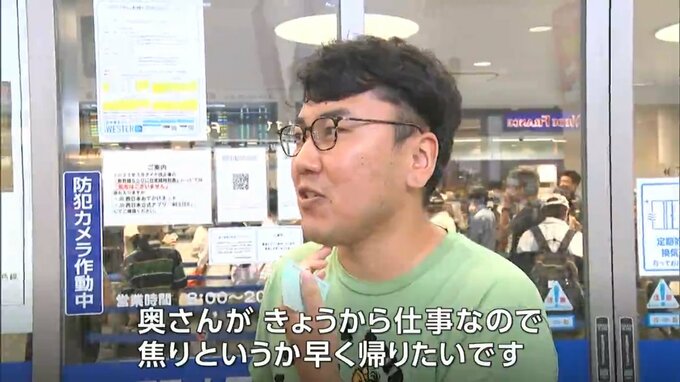 (大阪に帰る人)「きのう岡山に止まって、急遽ホテルに宿泊して、今から新大阪に戻ります。奥さんが今日から仕事なので、焦りというか早く帰りたいです」