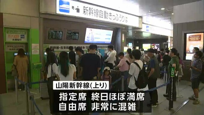 JR西日本によりますと、岡山から東京までの新幹線の指定席は終日ほぼ満席、自由席も非常に混雑しているということです。