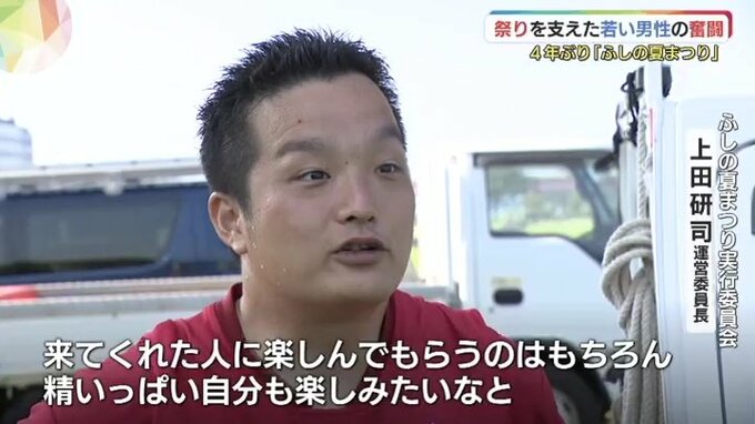 ふしの夏まつり 復活に密着特集です。7月29日、4年ぶりに山口市で行われた「ふしの夏まつり」。祭を中心となって支えたのは、地元出身・1人の若い男性です。熱い思いとその奮闘をカメラが追いました。