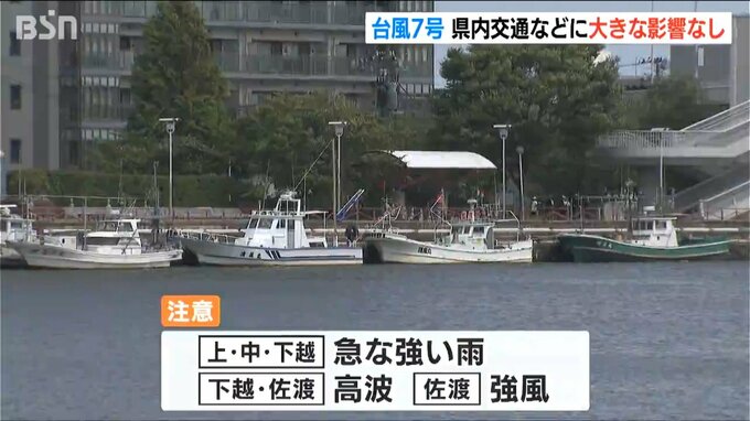 鳥取県などで被害をもたらしている台風7号は当初の予定より西へ進み、新潟県内からは離れる見込みで、交通などに大きな影響は出ていません。