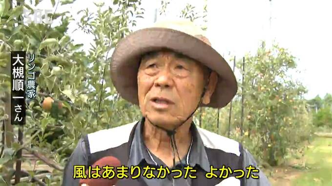 リンゴ農家 大槻順一さん:                                       「風はあまりなかったですね。よかった」                                       「ただあと心配なのは枝ずれ(傷)ってやつがどのくらい出るかってところですけど」