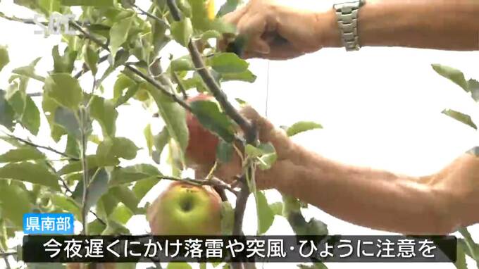 松本空港近くにある塩尻市洗馬(せば)のリンゴ畑では、15日は、それほど風もなかったということで、今のところ落果などの被害はないということです。