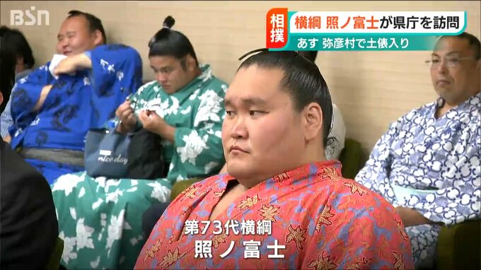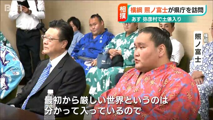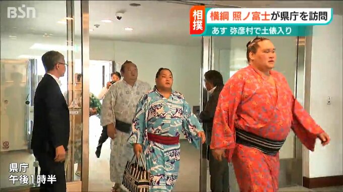 大相撲の横綱 照ノ富士が16日、新潟県 弥彦村で行われる土俵入りを前に新潟県庁を表敬訪問しました。
