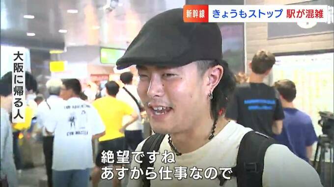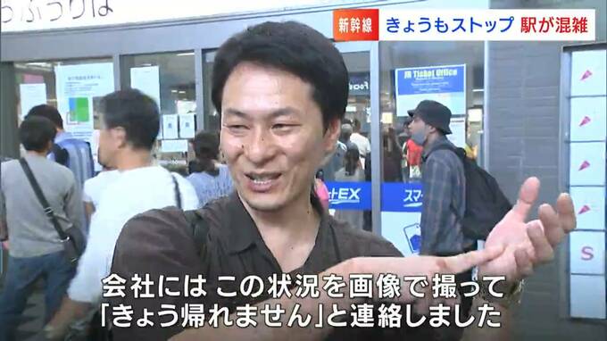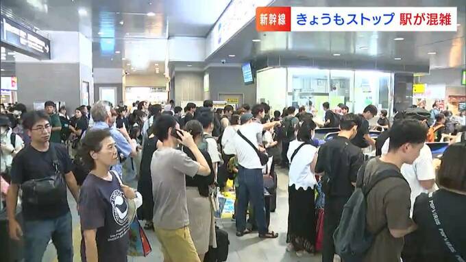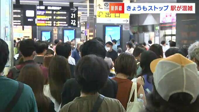 (杉澤眞優キャスターリポート)「午後1時前の新幹線改札口です。運転が止まった影響で立往生する人で、非常に混み合っています。中には、『ここに来たら運転が止まっていたのでびっくりした』という声も多く聞かれます」
