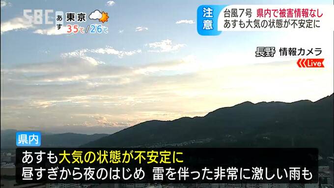 台風7号は日本海に抜けましたが、長野県内は17日も大気の状態が不安定となり、雷を伴った非常に激しい雨が降るところがある見込みです。