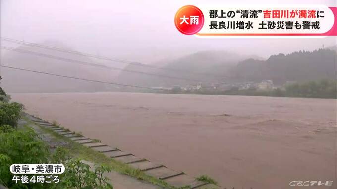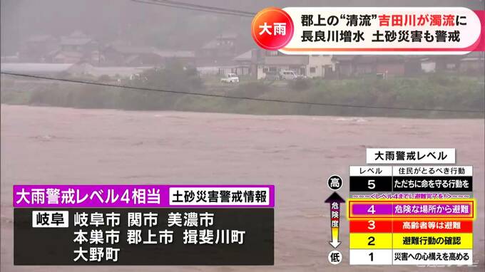 この美濃市や岐阜市、関市、本巣市、郡上市、揖斐川町、大野町には大雨警戒レベル4に相当する土砂災害警戒情報が出されています。