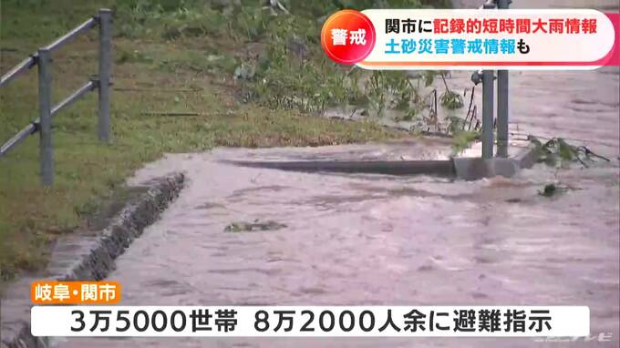 大雨洪水警報と土砂災害警戒情報が出されている岐阜県関市では、市内を流れる津保川の水量が増えていて、8万人あまりに避難指示が出されています。