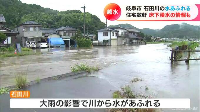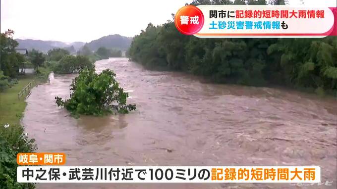 岐阜県関市では時間雨量100ミリの記録的な大雨となり、市内を流れる津保川の水量が増え続けています。