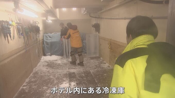 今は、師匠と弟子の2人で、氷彫刻だけではなく、ホテルで使用する木彫りの像や、発泡スチロールで作る模型なども製作しています。