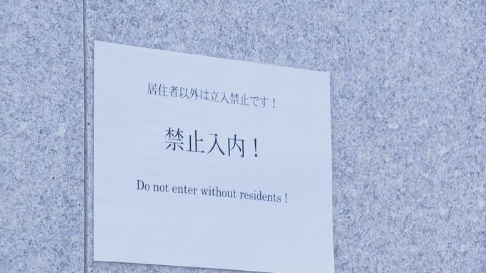 「居住者以外は立ち入り禁止ですという張り紙があります。中国語、英語でも書いてありますね」
