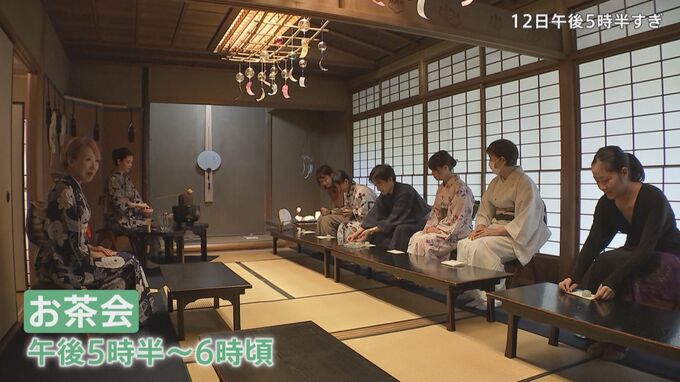 豊臣秀吉の妻「ねね」ゆかりの高台寺。夜の庭園では、プロジェクションマッピングが行われていました。また、お茶会を、午後5時半~6時頃の夜の時間帯に開催。