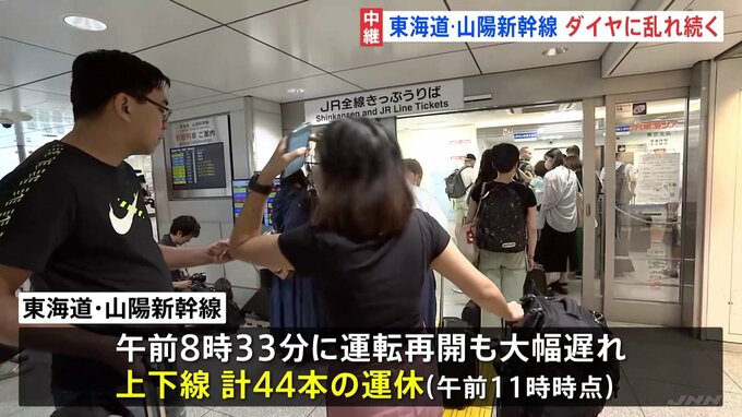 きのう大雨でダイヤが大幅に乱れた東海道新幹線と山陽新幹線は、きょうも始発から大幅にダイヤが乱れています。混乱が続く東京駅です。東京駅にある新幹線の改札前では、現在も新幹線の出発を待つ人が多くいるほか…