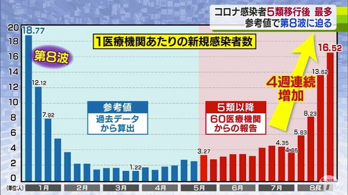 青森県内で8月13日までの1週間で確認された新型コロナの感染者は991人で、感染症法上の位置付けが5類に移行してから最も多くなりました。県によりますと、新型コロナの感染者数は8月13日までの1週間で県内60の医療…