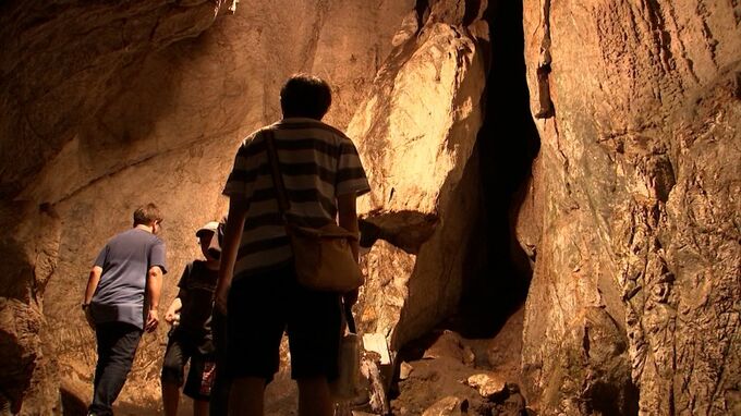 (神庭の滝 職員 谷口昌史さん)「こちらが鬼の穴です。奥行き75メートル、高さ8メートルの岩の洞窟になっています」