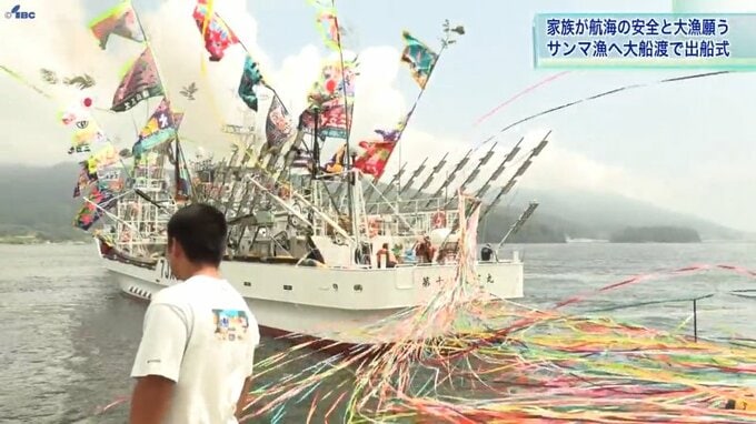 大型船によるサンマ漁の解禁を前に17日、岩手県大船渡市で出船式が行われました。長引く不漁に負けないようにと、色鮮やかな大漁旗で賑やかな船出です。色鮮やかな大漁旗を掲げるのは、大船渡市の鎌田水産に所属す…
