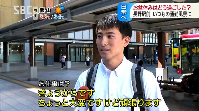 お盆休みは明けたものの、旅行者の姿も見られた17日朝のJR長野駅前。