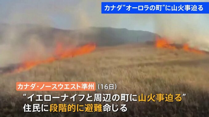 カナダでも大規模な山火事です。現地メディアによりますと、カナダ・ノースウエスト準州の当局は16日、冬にはオーロラ観光の町として知られるイエローナイフとその周辺の町に山火事が迫っているとして、住民に段階…