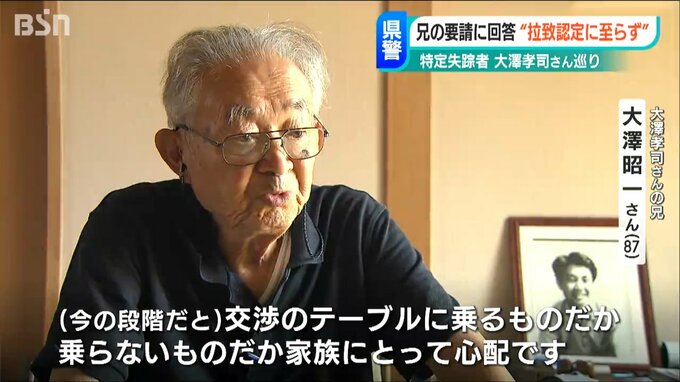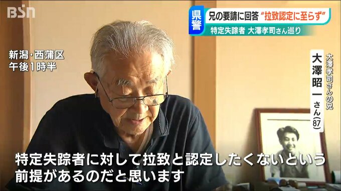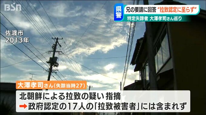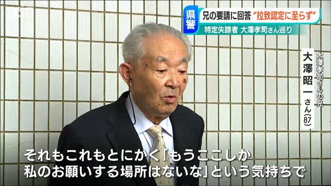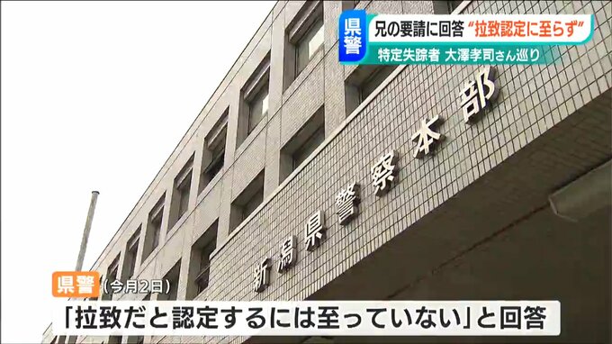 北朝鮮に拉致された可能性がある「特定失踪者」大澤孝司さんの兄 昭一さんが新潟県警に拉致事件として捜査するよう求めていたことについて、県警が「拉致だと認定するには至っていない」と回答していたことが分かりました。