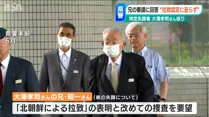 大澤孝司さんの兄・昭一さんは6月、新潟県警本部に対し弟の孝司さんの失踪は「北朝鮮による拉致である」と表明することと、その上で改めて捜査することを求めていました。