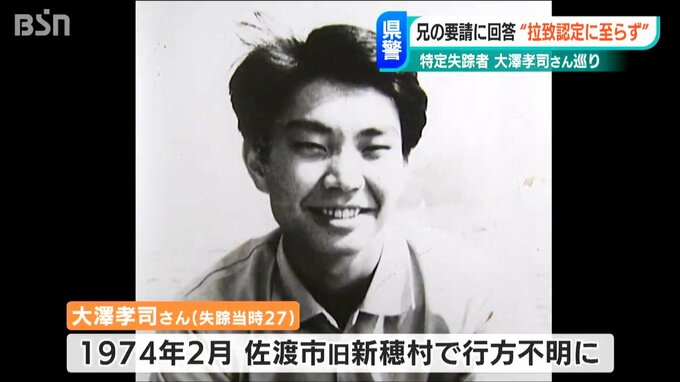 大澤孝司さんは1974年2月、県の職員として赴任していた佐渡市の当時の新穂村で行方不明になりました。