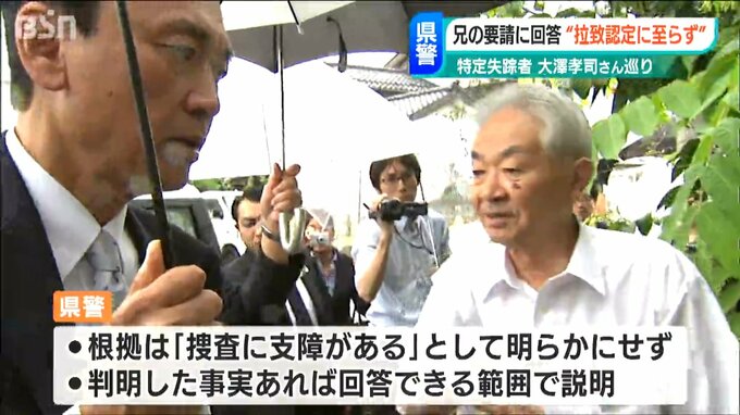 県警によりますと、この要請に対し今月3日、大澤さんに「拉致だと認定するには至っていない」と回答したということです。