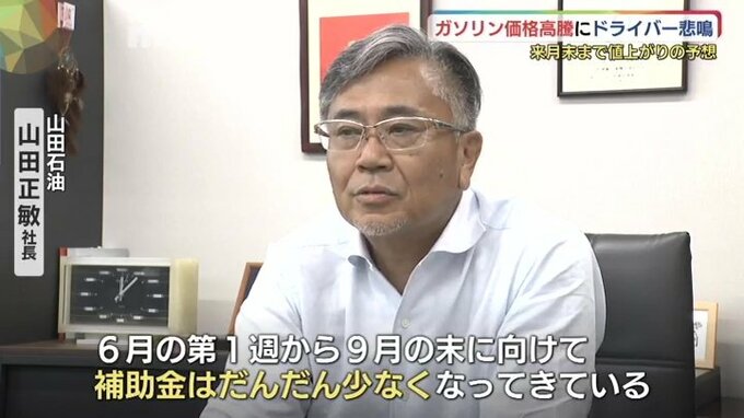 「補助金が減ることと同時にベースの原油の値段が上がってきているので、その分が上乗せで上がっているので、少し変化のスピードが速いということになっています」