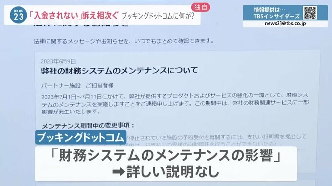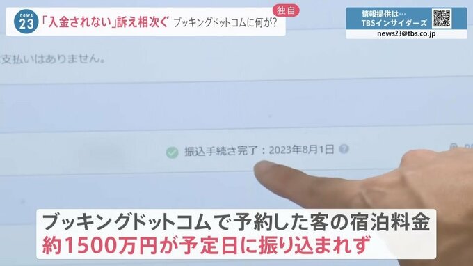 7月、TBSインサイダーズに「ブッキングドットコムからホテルへの宿泊費の振り込みが遅れている」との情報提供が寄せられました。