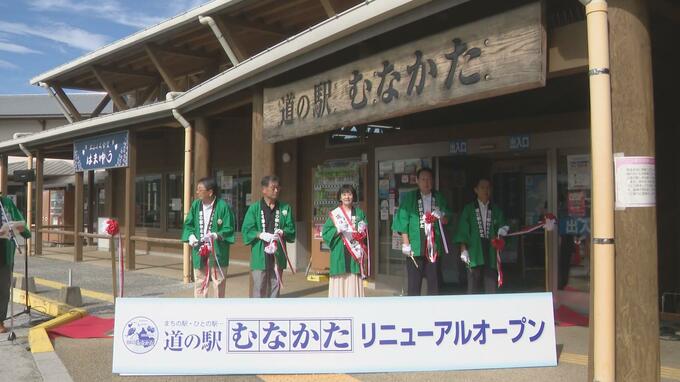 今年4月に開業15周年を迎えた福岡県宗像市の道の駅「むなかた」が18日リニューアルオープンしました。道の駅むなかたで開かれたリニューアルオープンセレモニーには、18日に一日駅長を務める宗像市の伊豆美…