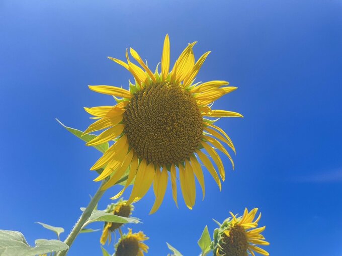 新潟県上越市板倉区では、地元の住民が耕作放棄地で丹精込めて育てたヒマワリが見頃を迎えています。