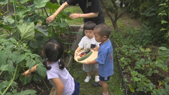 この日、保育園では、みんなで育てた夏野菜の収穫体験が行われました。