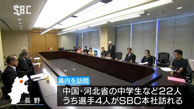 県内を訪れているのは、長野県の友好都市・河北省(かほくしょう)の中学生など選手団22人で、このうち選手4人が、関係者ととともにSBC本社を訪問しました。