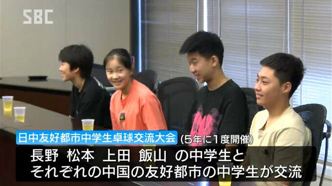 「日中友好都市中学生卓球交流大会」は、日本の自治体と中国の友好提携をしている都市が5年に一度開いていて、今回は、長野市や松本市など県内の4つの市の中学生と中国から招いた選手が交流します。