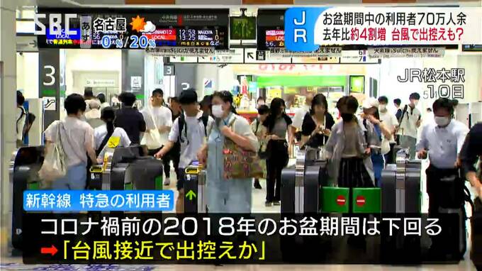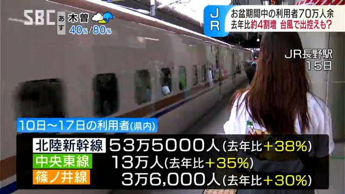 今年のお盆期間中に、長野県内で新幹線や特急列車を利用した人は2022年を4割近く上回りました。