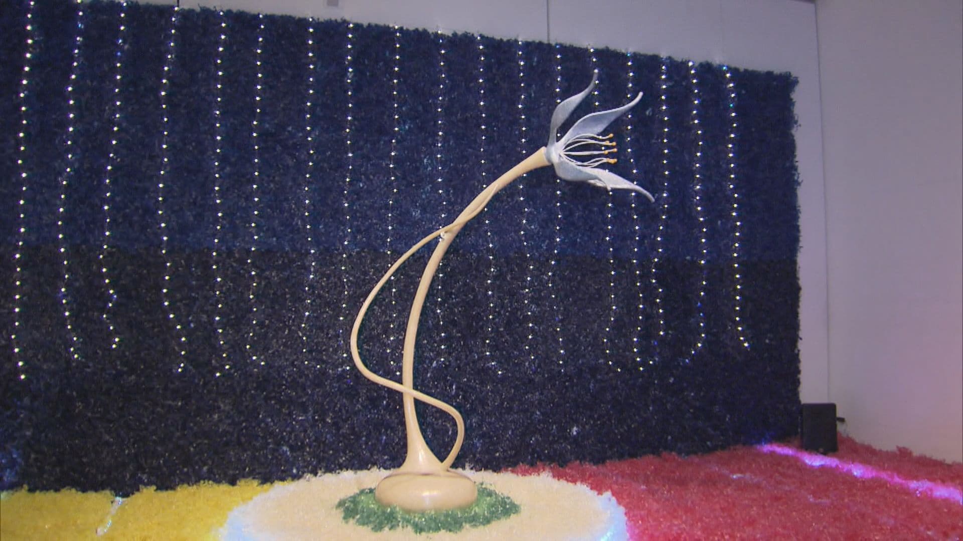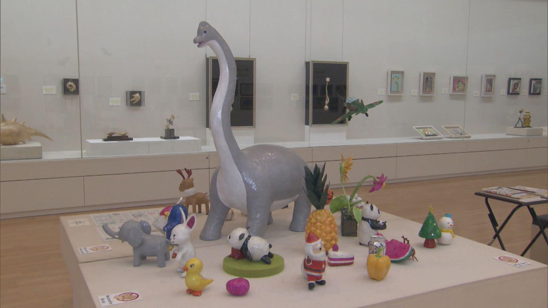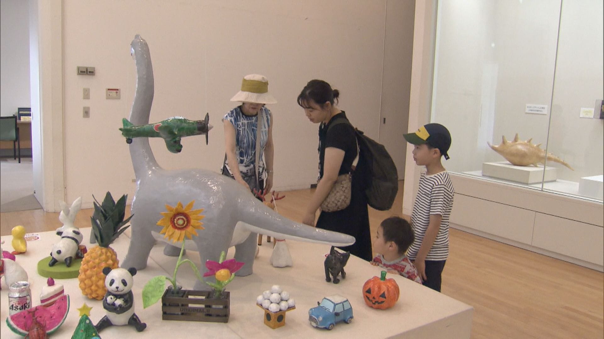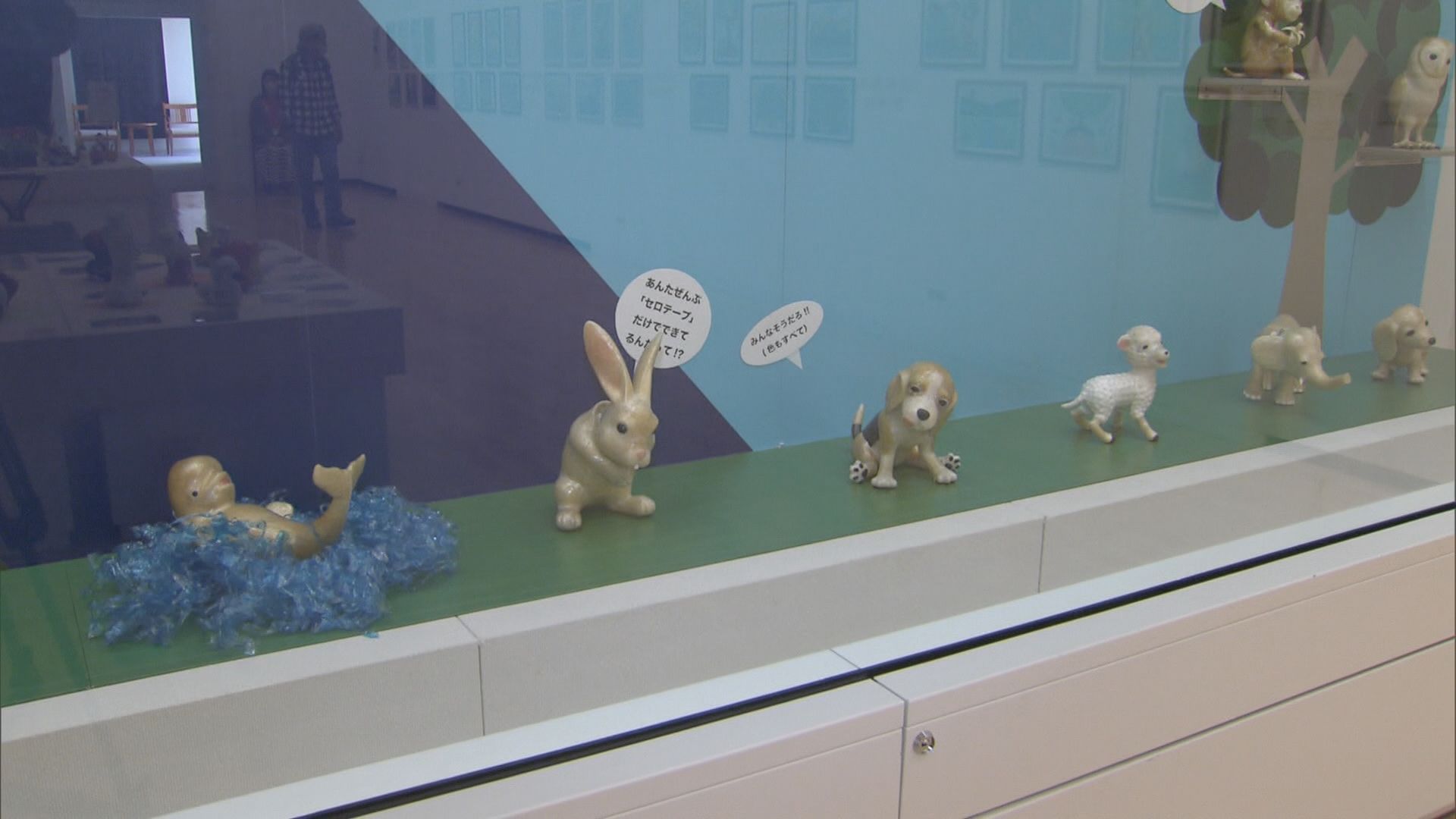 全てセロハンテープだけ テープを巻いて締めて固めて作った子供や動物・恐竜など約90点を集めたユニークな作品展 愛知・安城市