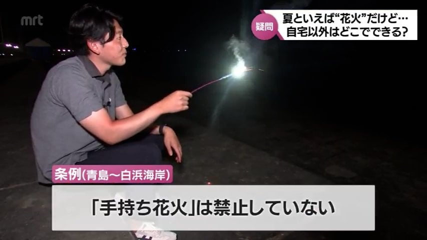 この条例では、青島海岸で午後10時以降のロケット花火や打ち上げ花火などの爆発音を発するものを禁止しているが、手持ち花火をすること自体は禁止していないということだ。