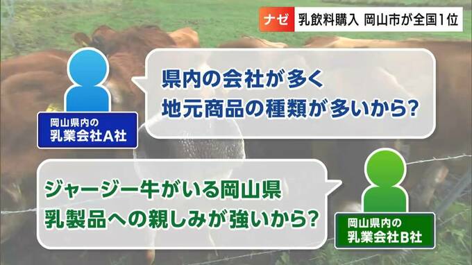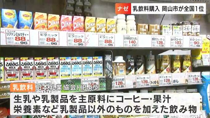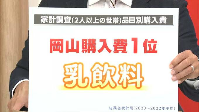 2020年からの3年間で乳飲料の購入費の平均が、岡山市は全国1位。国の調査によりますと購入費は年間3789円で全国平均の1.5倍ということがわかりました。