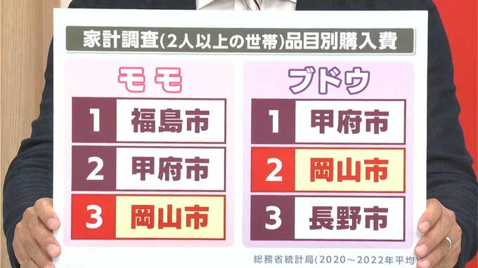 2020年からの3年間の平均をだしたランキングでは、ぶどうや桃は岡山市はそれぞれ2位3位と上位にランクイン。