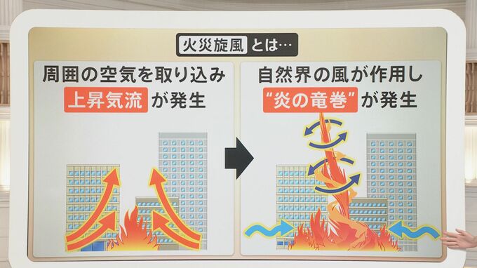 今回、ここまで大きな被害があった、火災が広がってしまった影響として、「火災旋風」が巻き起こったのではないかと見られているわけです。