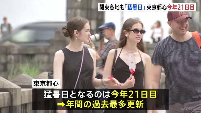関東地方は、きょうも厳しい暑さとなりました。東京都心では今年21日目の「猛暑日」となり、年間の過去最多を再び更新しました。関東地方でも朝から気温が上がり続け、午後3時半までの各地の最高気温は、▼栃木・…