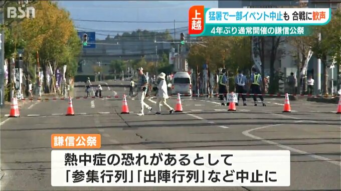 4年ぶりの通常開催となる予定だった謙信公祭。ただ20日午後4時から行う予定だった「出陣行列」などいくつかのイベントは熱中症の危険度が高まっているとして、中止となりました。