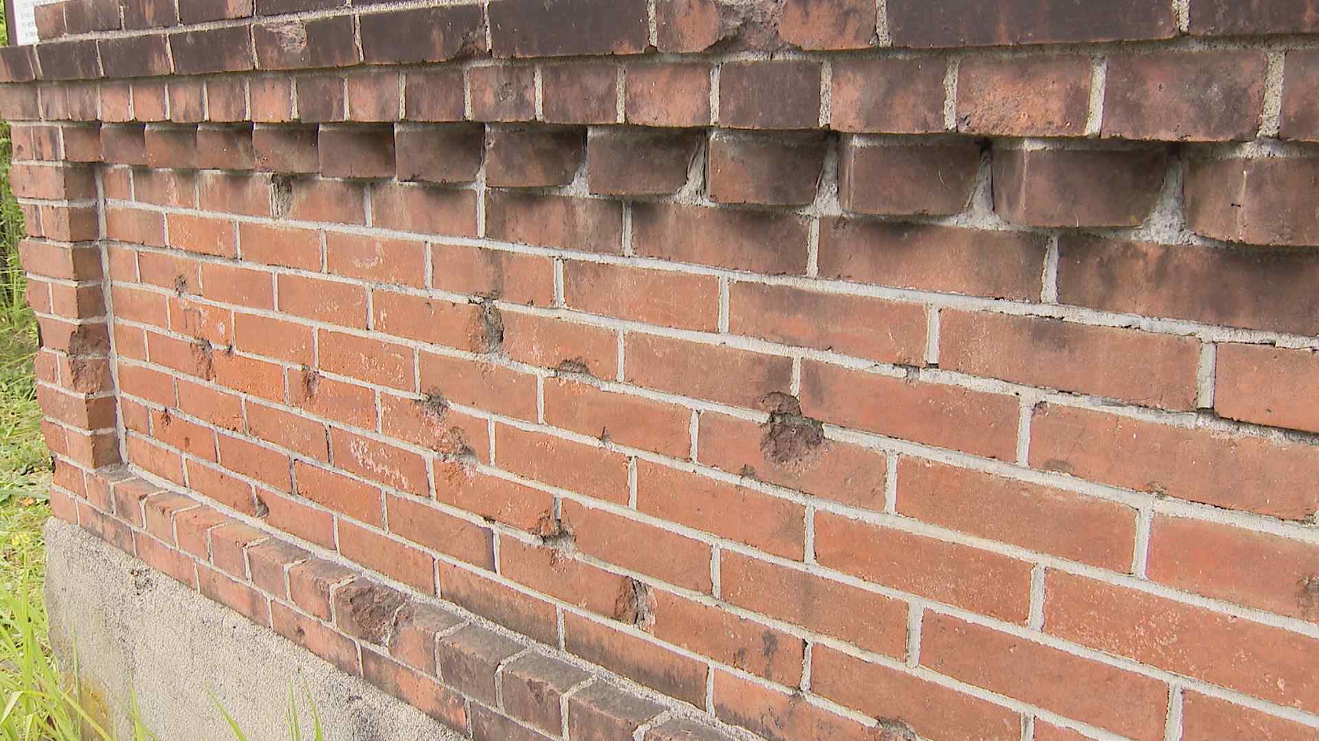 行橋市歴史資料館 小川秀樹館長「機銃掃射を受けた民家のレンガ塀です」