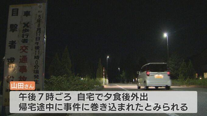 自宅からわずか250メートルで起きてしまった事故。姉によりますと、山田さんは、午後7時ごろ、両親と自宅で夕食のあと外出し帰宅途中に事件に巻き込まれたとみられます。