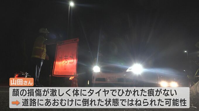 死因は、多発性骨折による外傷性ショックと気道内に血液が入ったことによる窒息とみられます。捜査関係者によりますと、遺体は顔の損傷が激しいことや、体にタイヤでひかれた痕がないことなどから、山田さんが道路にあおむけに倒れた状態で、車にはねられた可能性があるということです。