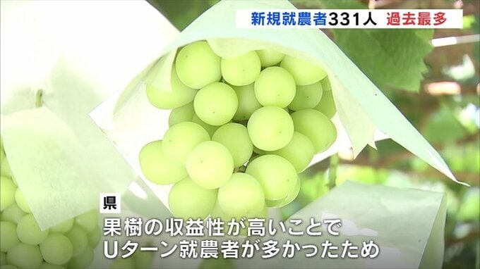 増加の背景として県はシャインマスカットを始めとする果樹の収益性が高いことでUターンして農業に就く人が多かったためとみています。
